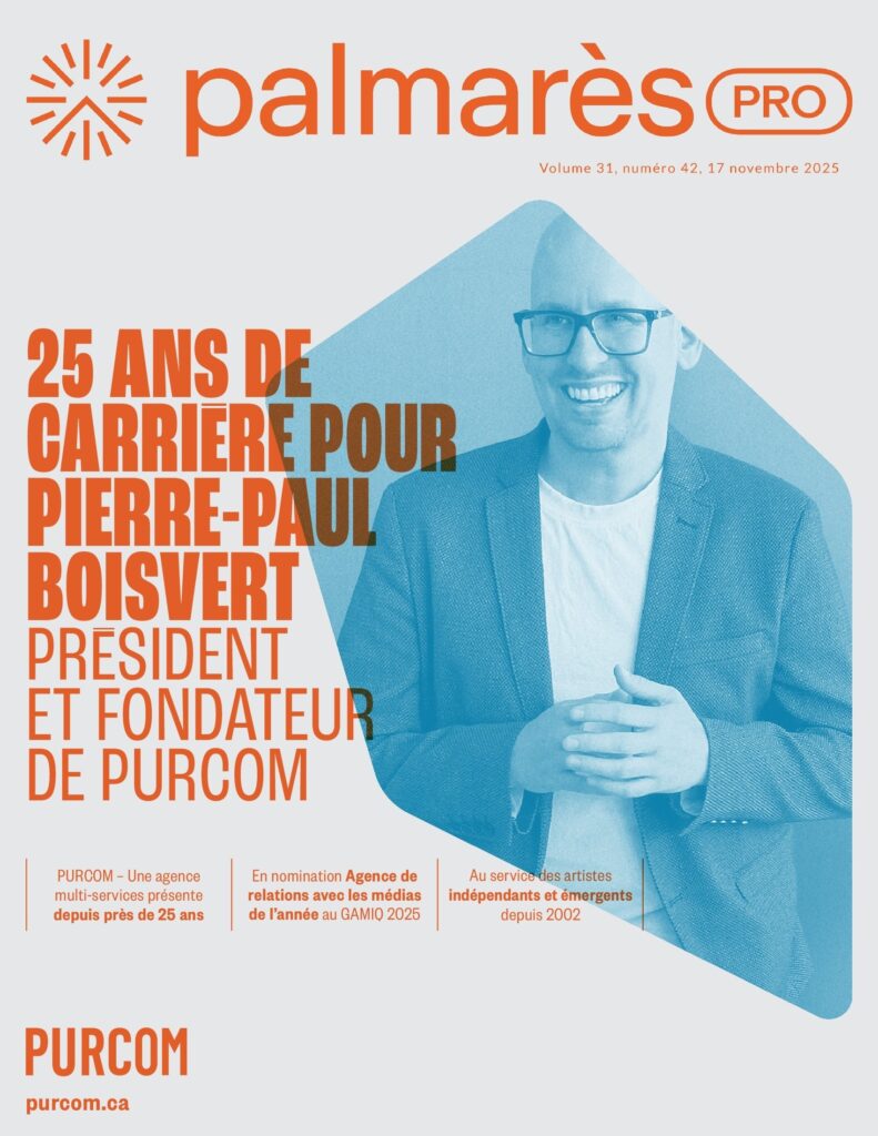 L’année 2025 marquant les 25 ans de carrière de notre président et fondateur Pierre-Paul Boisvert, cette belle longévité dans le show-business est soulignée aujourd’hui sur la couverture du magazine PalmarèsPro de l’Adisq.