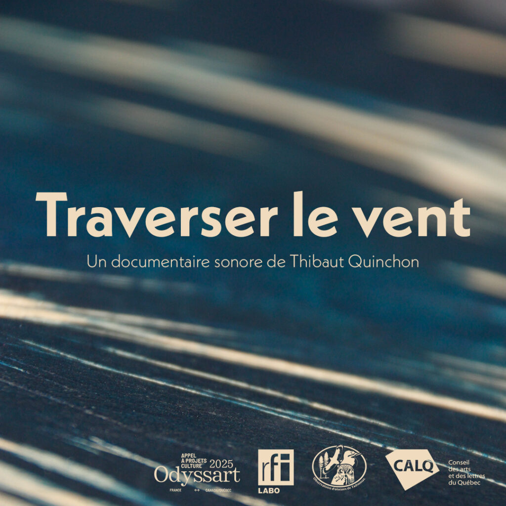 Traverser le vent plonge les auditeur·ices au creux des paysages naturels de la Haute-Côte-Nord. Dans une lenteur propice à la découverte des phénomènes naturels, l’œuvre dévoile les capacités surprenantes des oiseaux à perpétuer leur mode de vie ancestral. Les ambiances sonores se mêlent aux témoignages scientifiques et sensibles des ornithologues, créant une expérience à la fois poétique et rigoureuse. Le mixage en Dolby Atmos, réalisé au RFI Labo à Paris, permet une spatialisation tridimensionnelle du son. L’auditeur·ice se retrouve littéralement au centre de l’action, comme posté sur les falaises de Tadoussac au cœur de la migration.